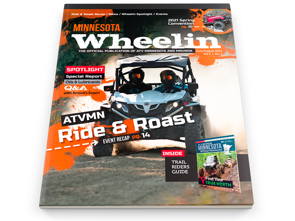 Minnesota Wheelin is the new, official publication of ATV Minnesota and the Minnesota 4WD Association. Published six times a year, it delivers news, feature articles and information our members tell us is important to them. We tackle the big issues facing our clubs and industry, and put the spotlight on clubs, trails they are building and maintaining, destinations near and far, plus fun club rides and special events across Minnesota.
