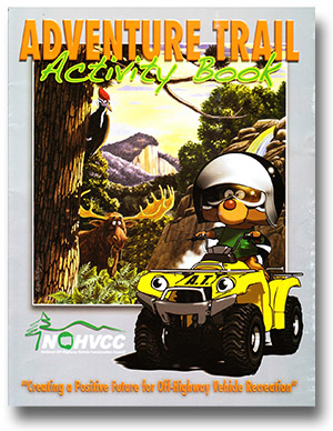 ADVENTURE TRAIL YOUTH SAFETY PROGRAMColor books, crayons, posters to promote ATV safety to members with children, and at trailheads, schools, restaurants and club businesses. Available free for the cost of shipping from the National Off-Highway Vehicle Conservation Council (NOHVCC).