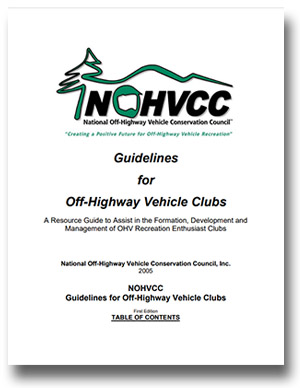 CLUB START-UP KITNOHVCC offers a free booklet called “Guidelines for Off-Highway Vehicle Clubs: A Resource Guide to Assist in the Formation, Development, and Management of OHV Recreation Enthusiast Clubs.”